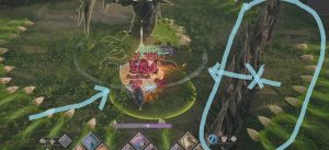 - 足元に黄色い円が出たら移動して地面から生える枝をよける。