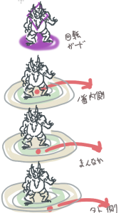 外側安置でガード攻撃:ガードに成功したらバフがつく